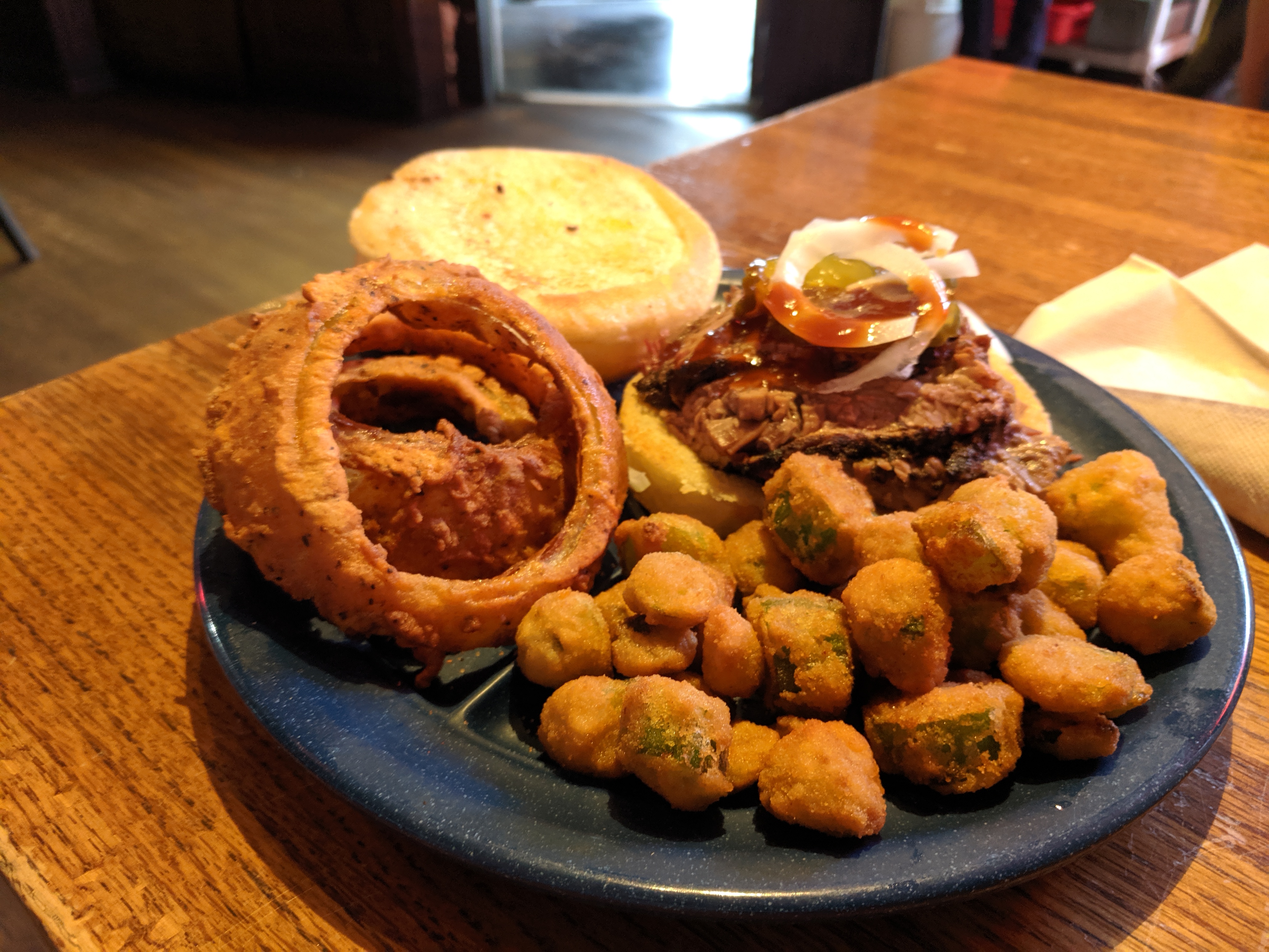 After a shortened morning, some local eats, specifically some BBQ was in order, so we walked a couple blocks into the historic district and grabbed a bite at Sonny Bryan’s. A brisket sandwich with fried okra and some onion rings and a sweet tea hit the spot.